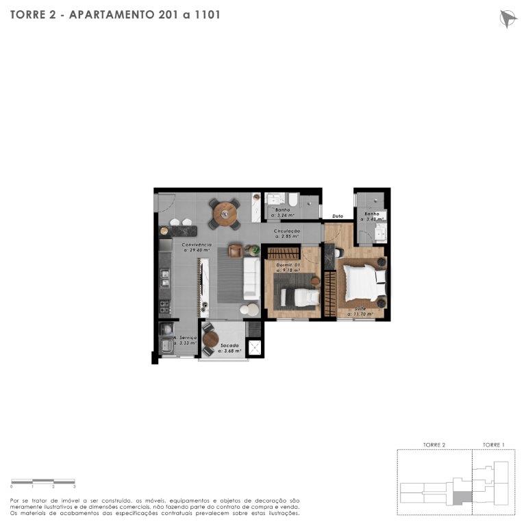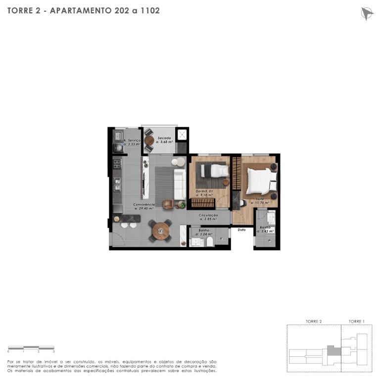 Apartamento 02 quartos (sendo 01 suíte) Premium com incríveis 80m² privativos. Residencial Class fica localizado no bairro Comerciário, Criciúma, próximo do Estádio Heriberto Hulse.
