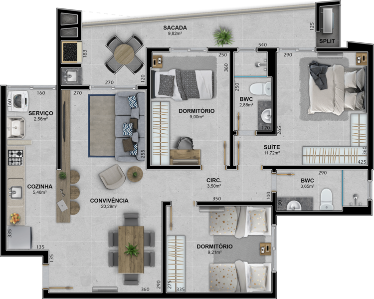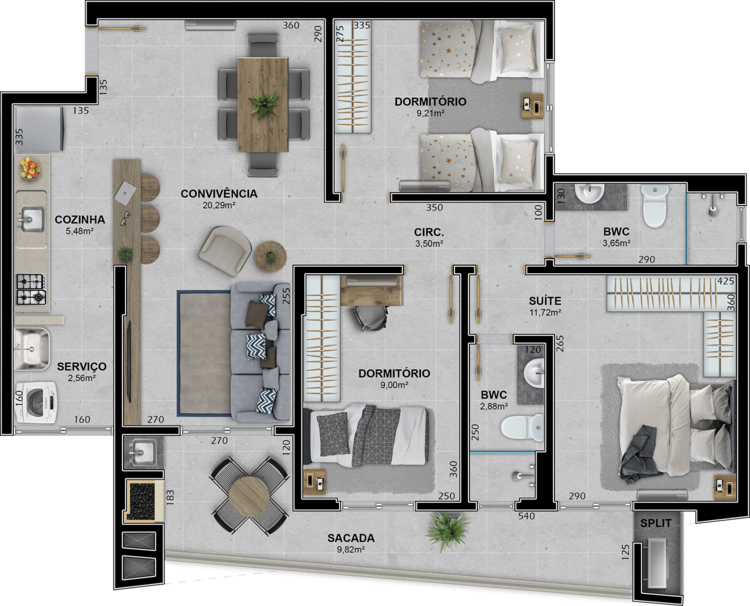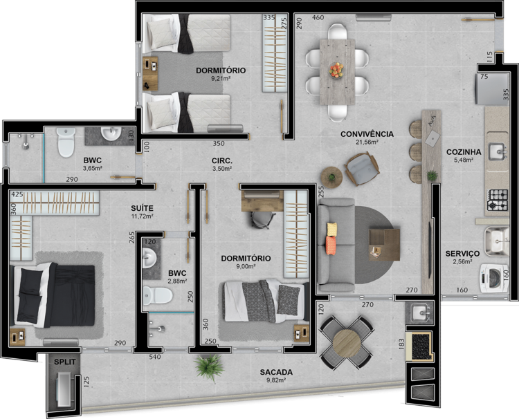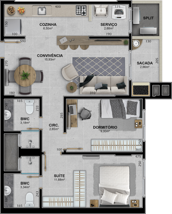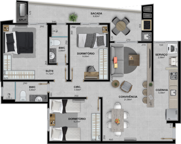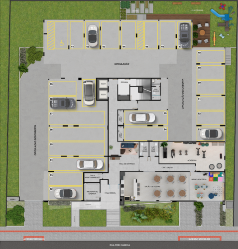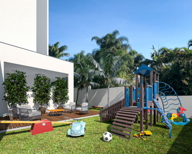 Infraestrutura do empreendimento com Academia, Brinquedoteca, Playground e Salão de Festas.